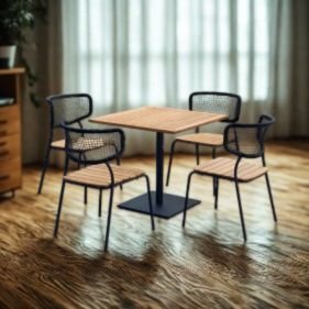 The 5-piece Coffee Set by Kora Furniture Corporation is a perfect fusion of style, strength, and practicality. Designed for outdoor comfort and gatherings, this set includes four ergonomically crafted chairs and a durable square table measuring 70x70cm. Made with high-quality materials and precision craftsmanship, each piece is built to withstand the elements while maintaining elegance and charm. Ideal for patios, balconies, or garden spaces, this set offers a cozy and stylish setting for coffee, conversation, or relaxation. Whether for personal enjoyment or hospitality use, it represents our commitment to outdoor living with comfort and class.